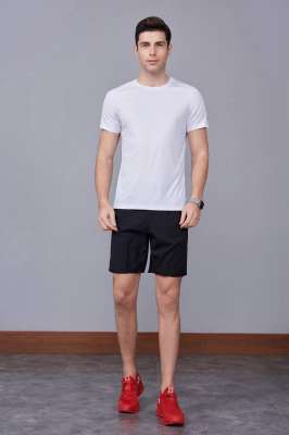 超彈力純色上衣 夏季男裝T恤文化衫 白色【圓領】