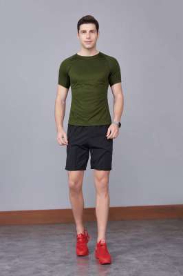 修身運動短袖 舒適透氣跑步訓練速干T恤-軍紅色